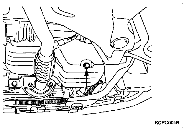 1. With the vehicle parked on a level surface, remove the magnetic plug and drain transaxle oil.