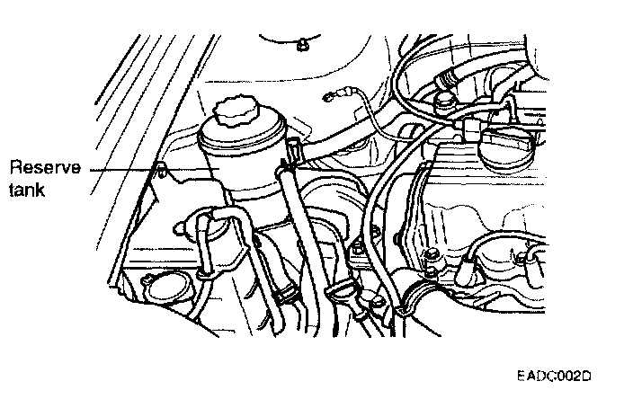 2. With the engine idling, turn the wheel all the way to the left and right several times. Check the fluid in the oil reservoir for foaming, and its level. Replenish the fluid in the oil reservoir through the oil filter if necessary.
