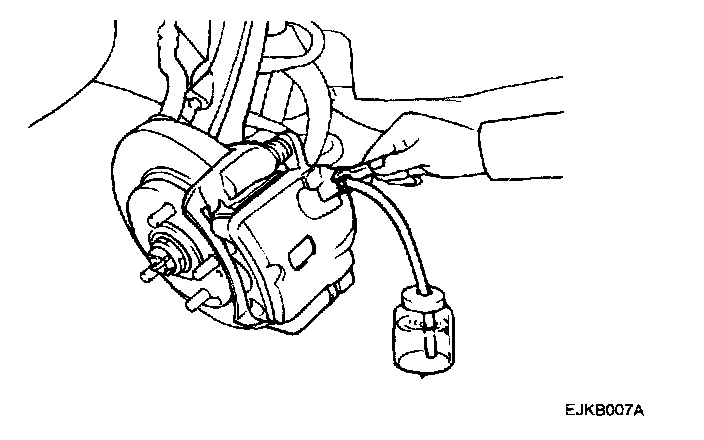 3. Depress the brake pedal a few times. Then loosen the bleeder screw(with the brake pedal still depressed), and tighten it after the brake fluid stops flowing.