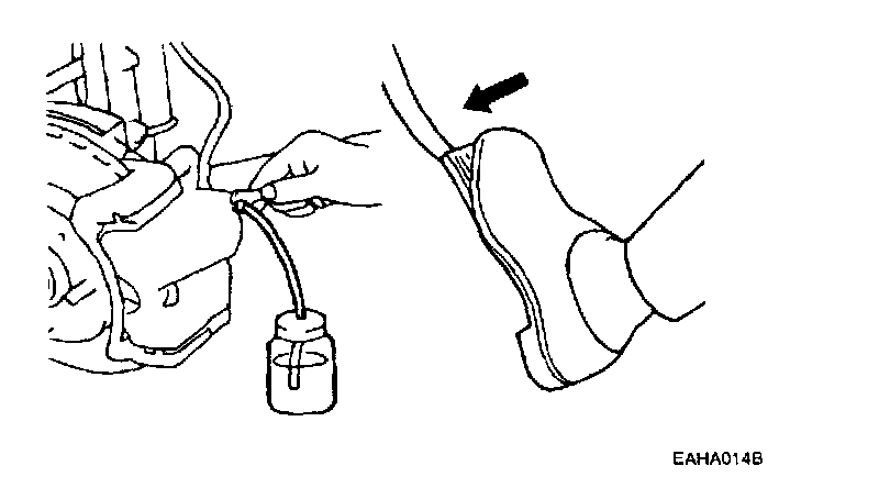 2. Connect a vinyl tube to the bleeder screw of each wheel cylinder. Put the other end of the vinyl tube in a vessel to receive the brake fluid.