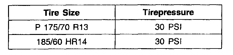 TIRE INFLATION PRESSURE (CHECK WITH COOL TIRES)