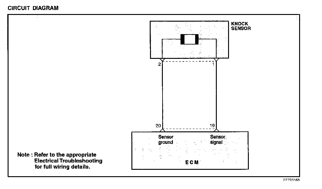 1. Disconnect the knock sensor connector and measure resistance between terminals 1 and 2.