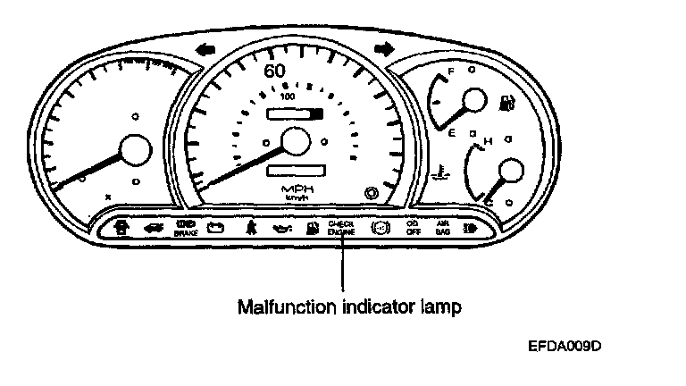 MALFUNCTION INDICATOR LAMP (MIL)A malfunction indicator lamp illuminates to notify the driver that there is a problem with the vehicle. However, the MIL will go off automatically after 3 subsequent sequential driving cycles without the same malfunction. Immediately after the ignition switch is turn on (ON position - do not start), the MIL will illuminate continuously to indicate that the MIL operates normally.