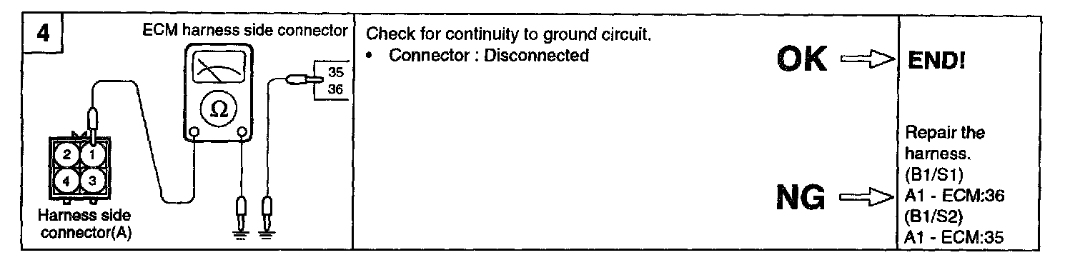 NOTE: If you release the accelerator pedal suddenly after engine running about 4000 rpm, fuel supply will stop for short period and the O2 sensor service data in the HI-SCAN will display values in the A range. When you suddenly press on the accelerator pedal down, the voltage will reach B range. When you let the engine idle again, the voltage will fluctuate between ranges A and B. In this case, the O2 sensor can be determined as good.