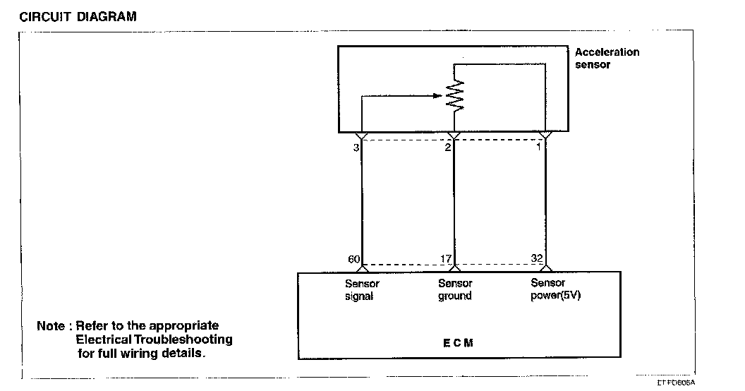 The acceleration sensor is used to sense rough road conditions. The sensor's signal is used by the Engine Control Module (ECM) to prevent wrongful misfire detection.