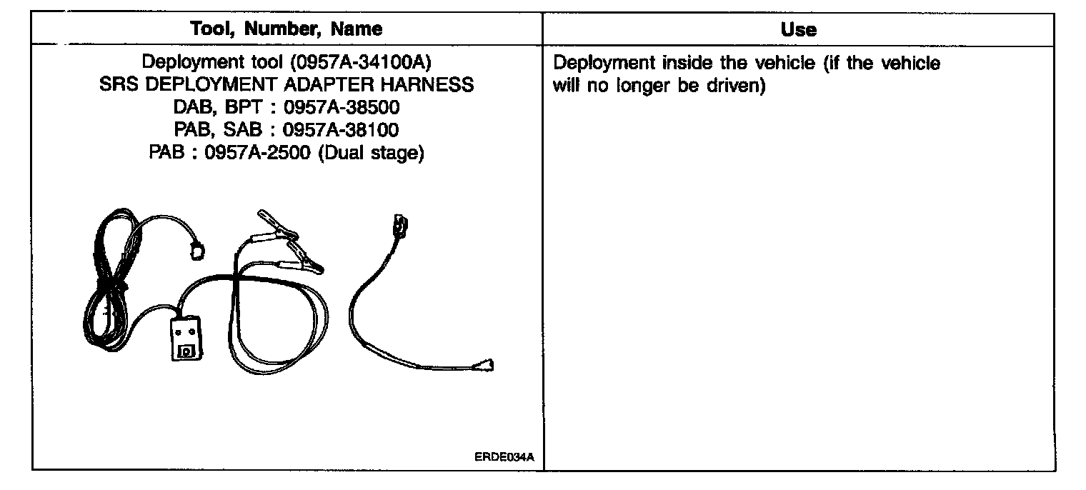 1. Before deploying the airbag in this manner, first check to be sure that there Is no one in or near the vehicle. Wear safety glasses.