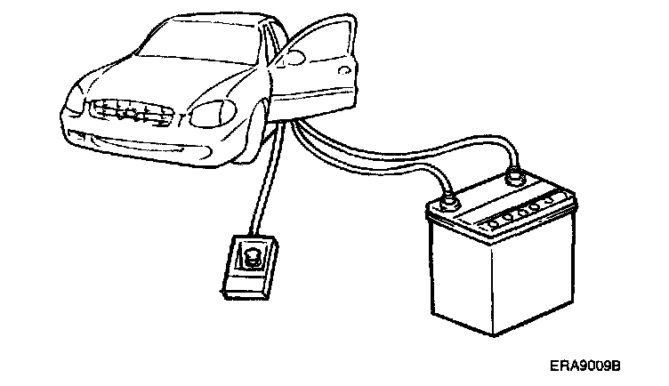 2. Disconnect the negative (-) and positive (+) battery cables from the battery terminals, and then remove the battery from the vehicle.