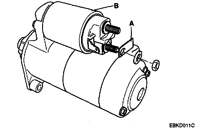 DISASSEMBLY1. Disconnect the M-terminal (A) on the magnet switch assembly(B).