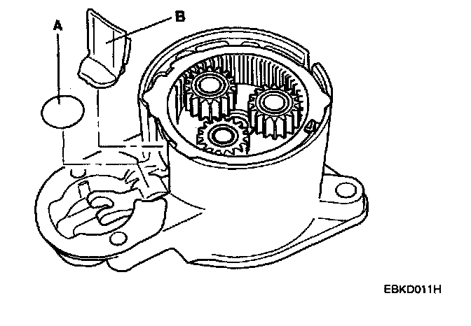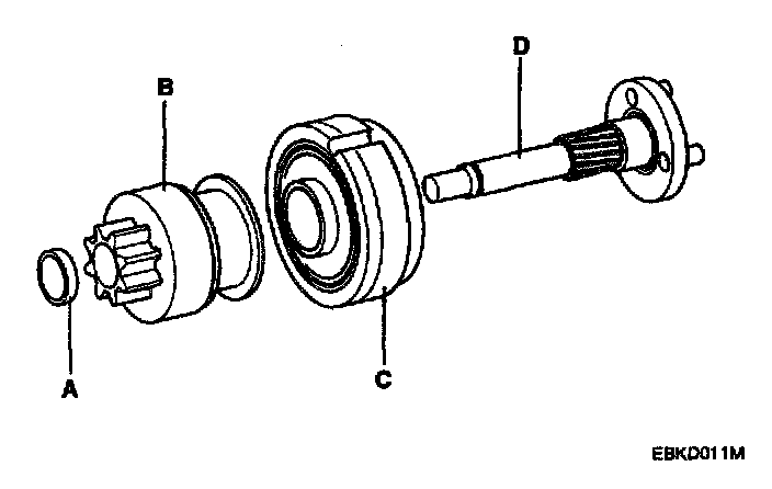 11. Disconnect the stop ring(A), overrunning clutch(B), internal gear(C) and planet shaft(D).