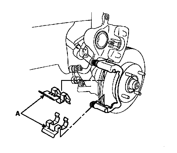 9. Install the pad retainers (A).