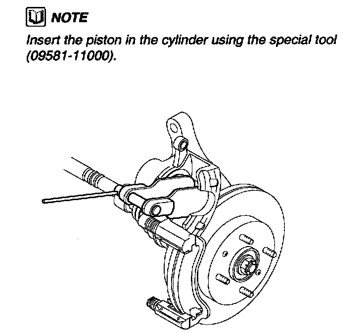 NOTE: Insert the piston in the cylinder using me special tool (09581-11000).