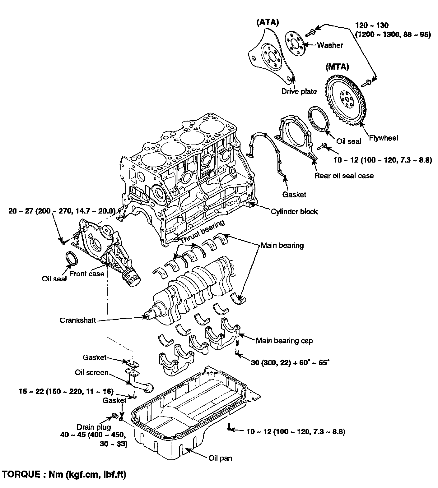 Main bearing cap bolt 30 Nm (300 kgf-cm, 22 ft. lbs.) + 60° - 65°