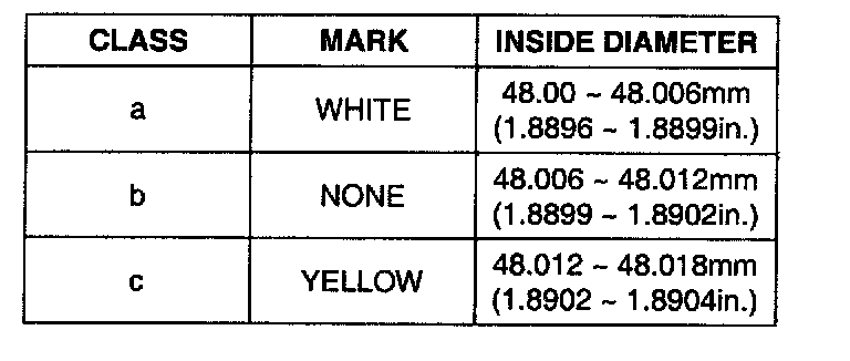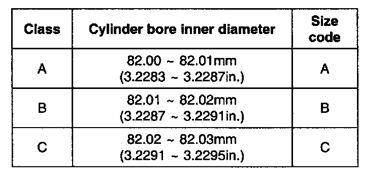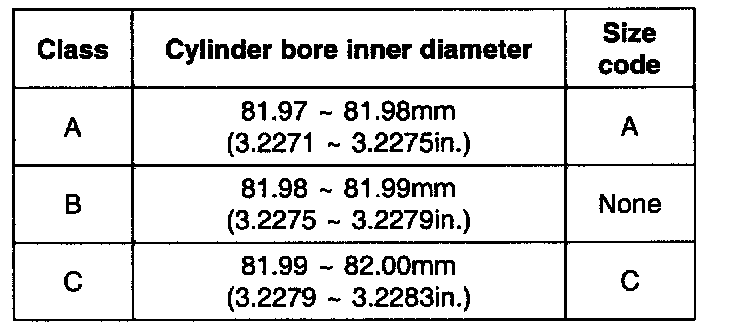 6. Check the cylinder bore size code on the cylinder block bottom face.