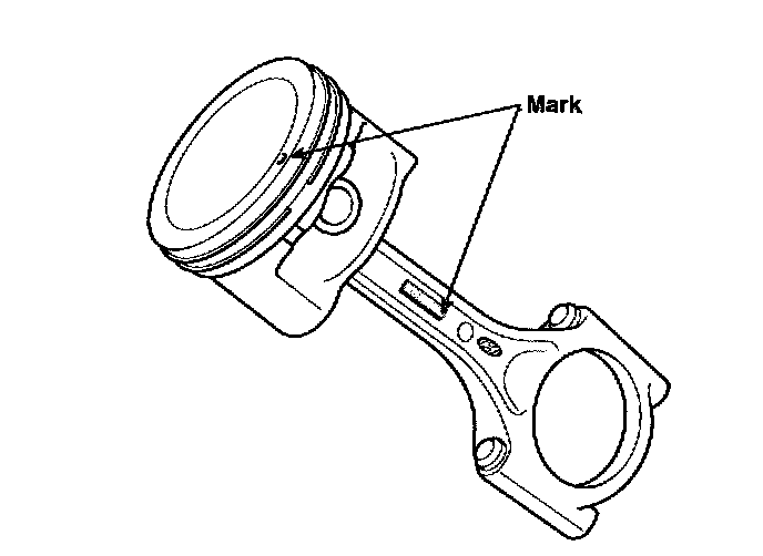 2. The piston front mark and the connecting rod front mark must face the timing belt side of the engine.