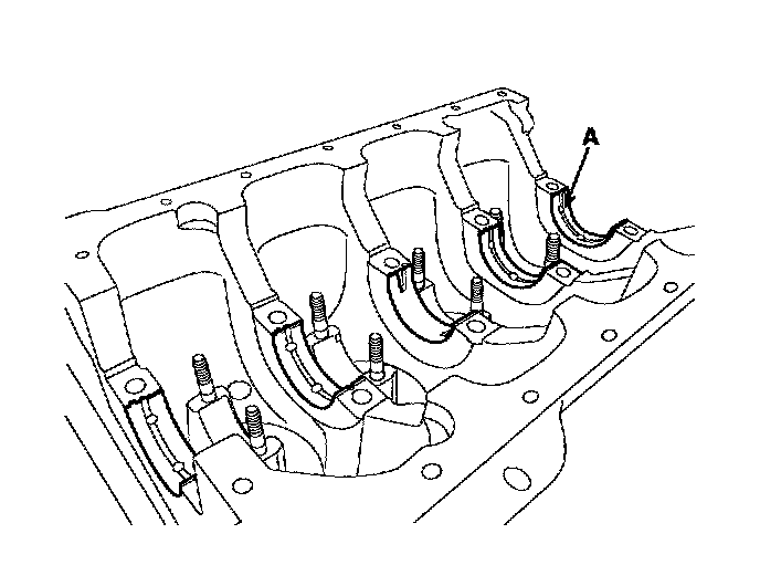 1. Align the bearing claw with the claw groove of the cylinder block, push in the 5 upper bearings (A).