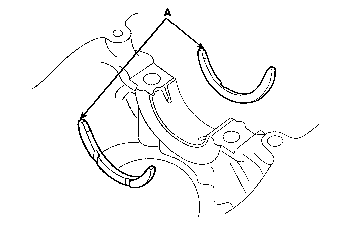 Install the 2 thrust bearings (A) under the No.3 journal position of the cylinder block with the oil grooves facing outward.