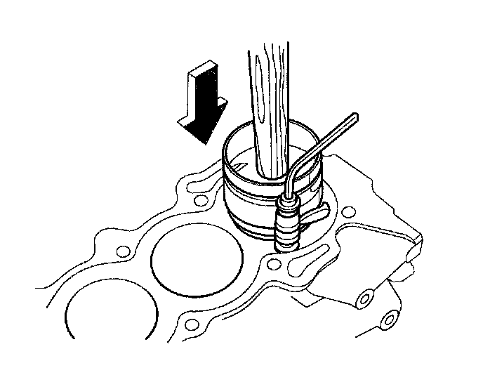 2. Install the ring compressor, check that the bearing is securely in place, then position the piston in the cylinder, and tap it in using the wooden handle of a hammer.