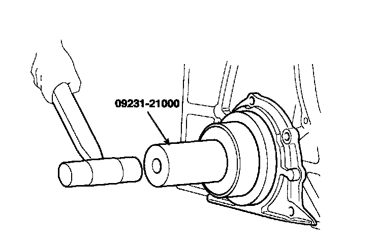 2. Using SST (09231-21000) and a hammer, tap in the oil seal until its surface is flush with the rear oil seal retainer edge.
