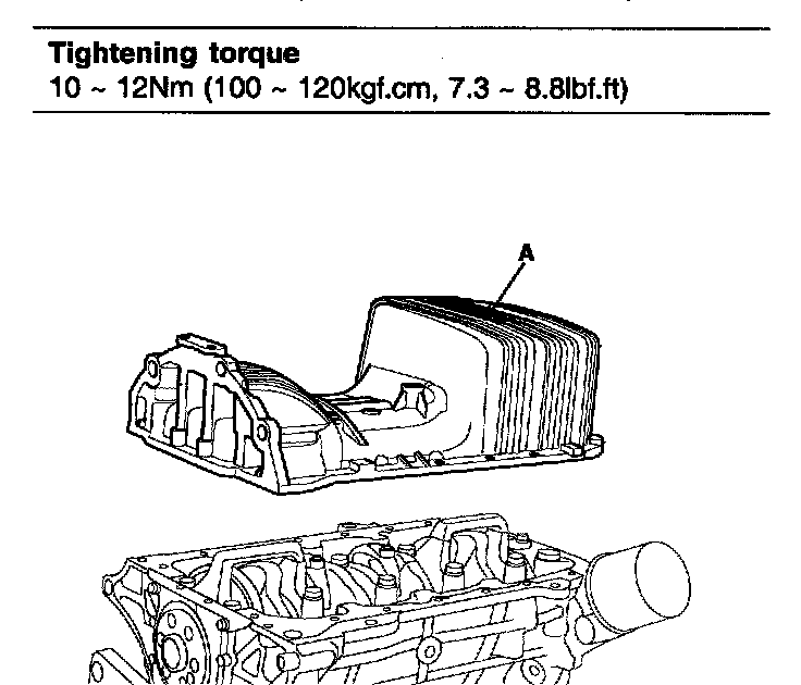 3. Install the oil pan (A) with the 19 bolts.