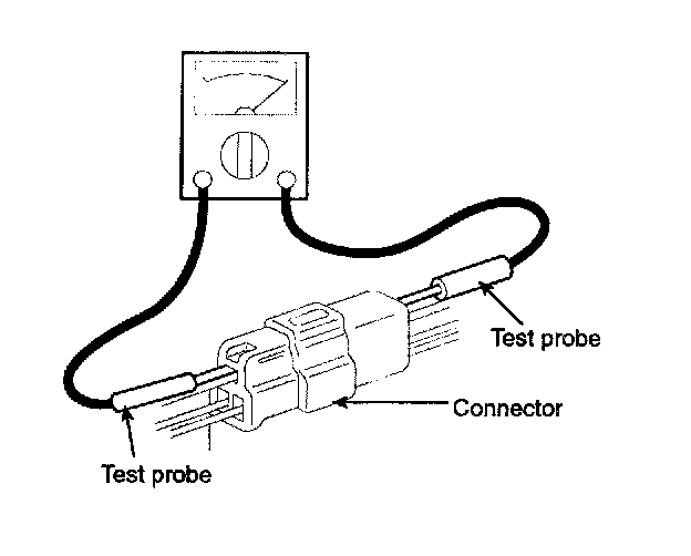 11. When using a circuit tester to check continuity or voltage on connector terminals, insert the test probe into the harness side. If the connector is a sealed connector, insert the test probe through the hole in the rubber cap until contacts the terminal, being careful not to damage the insulation of the wires.