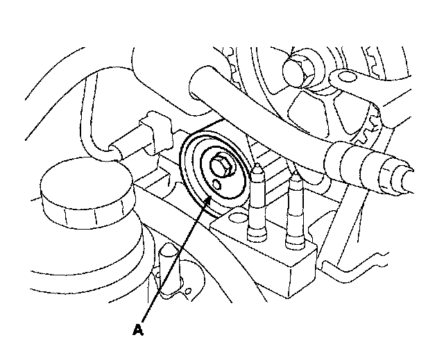 5. Temporarily loosen tensioner pulley (A) by center bolt.