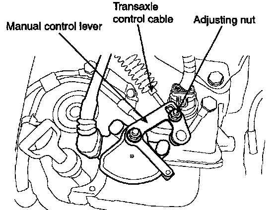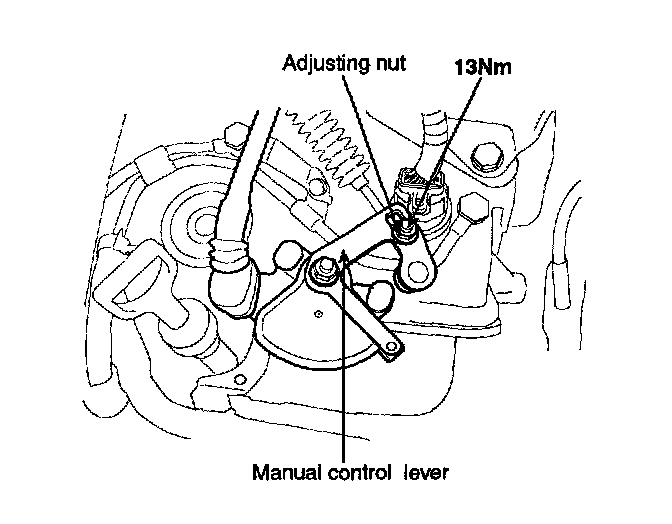 2. Loosen the control cable to manual control lever coupling nut to free the cable and lever.