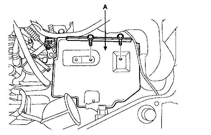 7. Remove the control cable to transaxle range switch (A) mounting nut (B).