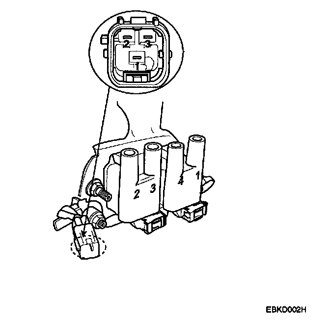 INSPECT IGNITION COIL1. Measure the primary coil resistance between terminals 1, 2 and 1, 3.