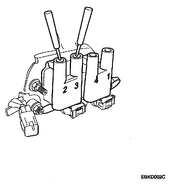 CAUTION: Be sure, when measuring the resistance of the secondary coil, to disconnect the connector of the ignition coil K Ohms