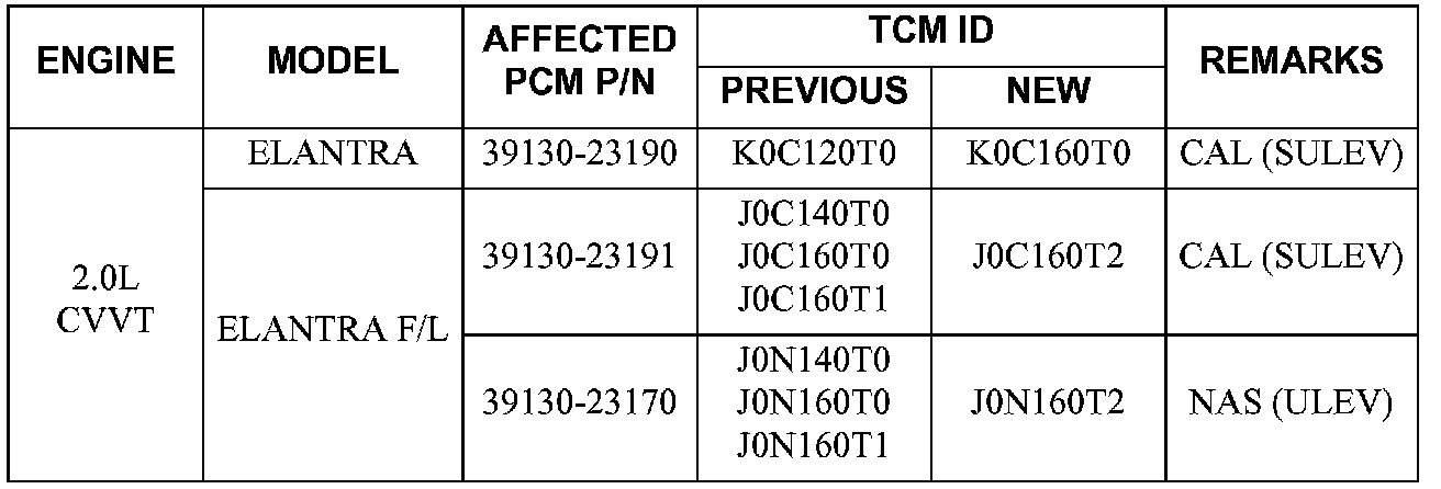 ^ Model: 2004 ELANTRA vehicles with automatic transaxles and CVVT engines