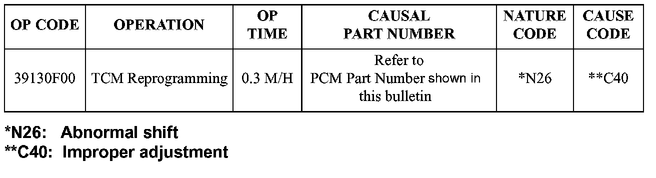 TCM REPROGRAMMING SPECIFICATIONS