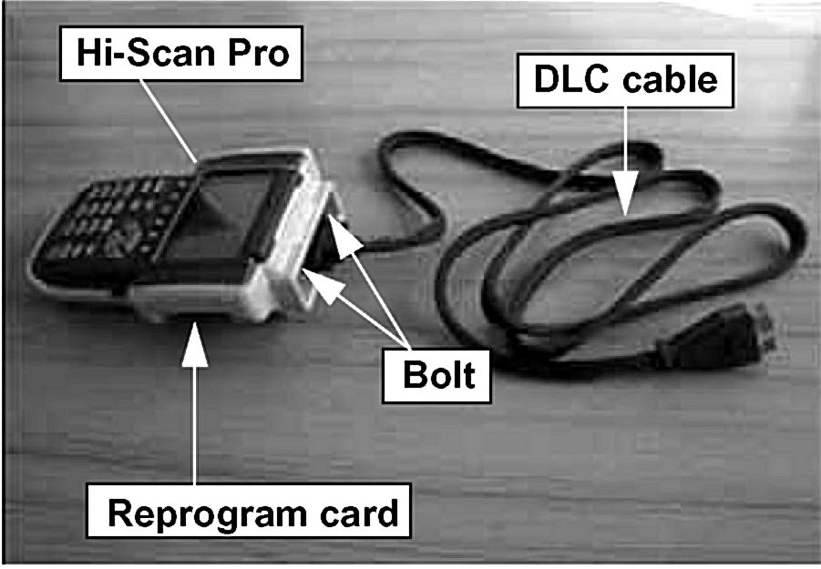 1. Attach the Data Link Connector (DLC) cable to the Hi-Scan Pro main body and securely tighten the two bolts.