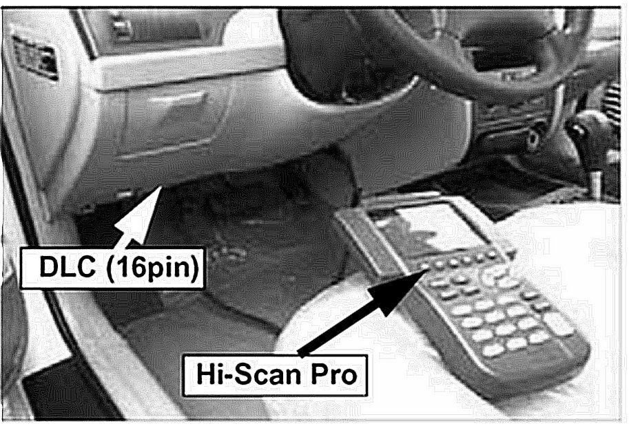 3. Plug the DLC cable from the Hi-Scan Pro into the 16 pin data link connector (under the driver's side instrument panel).