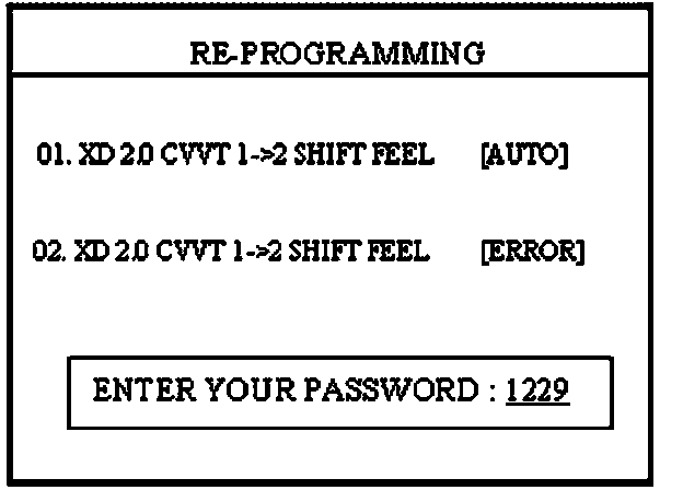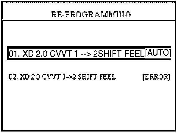 5. "REPROGRAM ERROR, PLEASE CHECK THE SYSTEM": In this case, you must reprogram manually after selecting the menu option "02. XD 2.0 CVVT 1-->2 SHIFT FEEL [ERROR]".