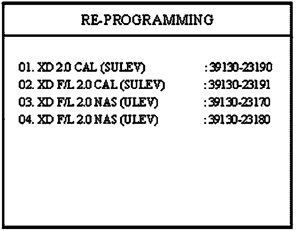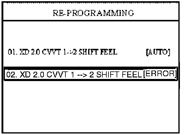 In the event that "01. XD 2.0 CVVT 1-->2 SHIFT FEEL [AUTO]" fails to download the new ECM program, option "02. XD 2.0 CVVT 1-->2 SHIFT FEEL [ERROR] must be used.