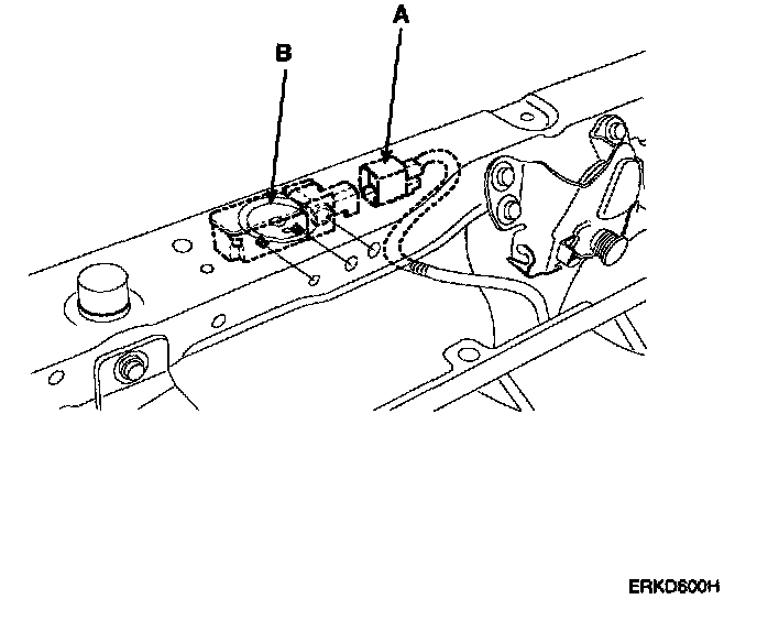 4. Disconnect the SRS harness 2P connector (A) from the front impact sensor (B).