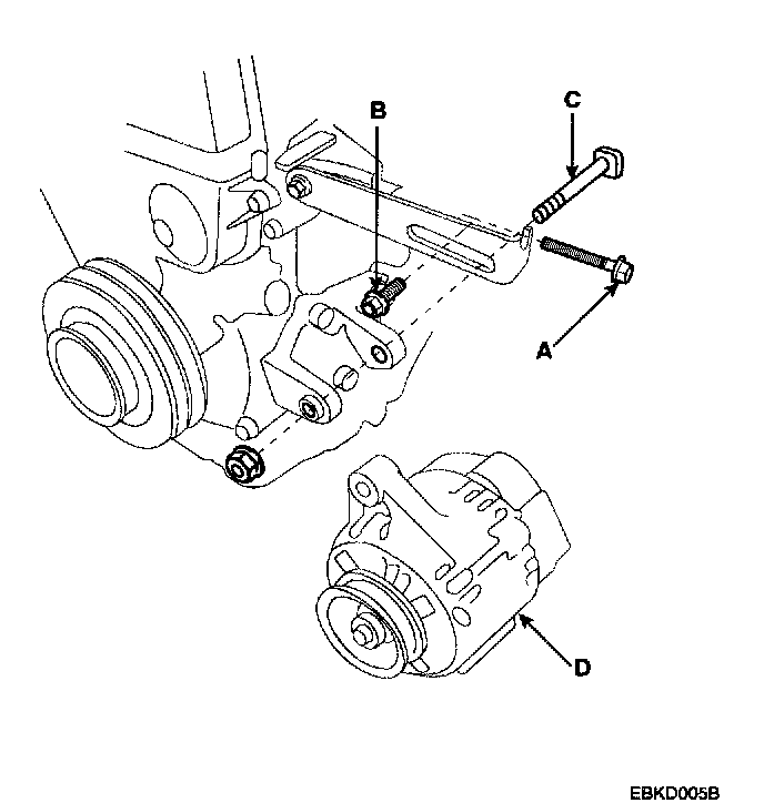 3. Remove the adjusting bolt(A) and mounting bolt(B), then remove the generator belt(C).