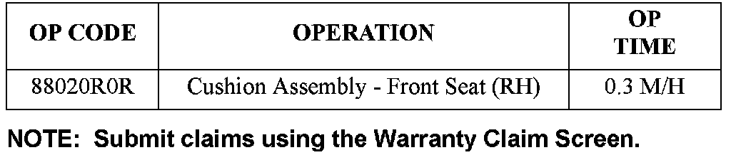 OCCUPANT CLASSIFICATION SYSTEM (OCS) PARTS REPLACEMENT