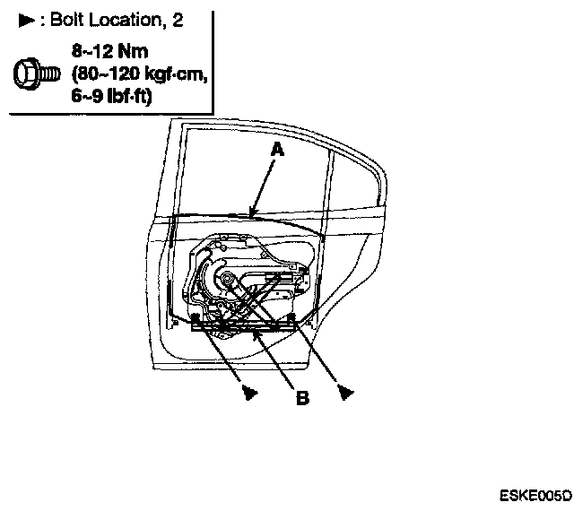 3. Remove the bolts and screw from the rear channel (A), then pull the glass run (B) away as needed from the rear channel.