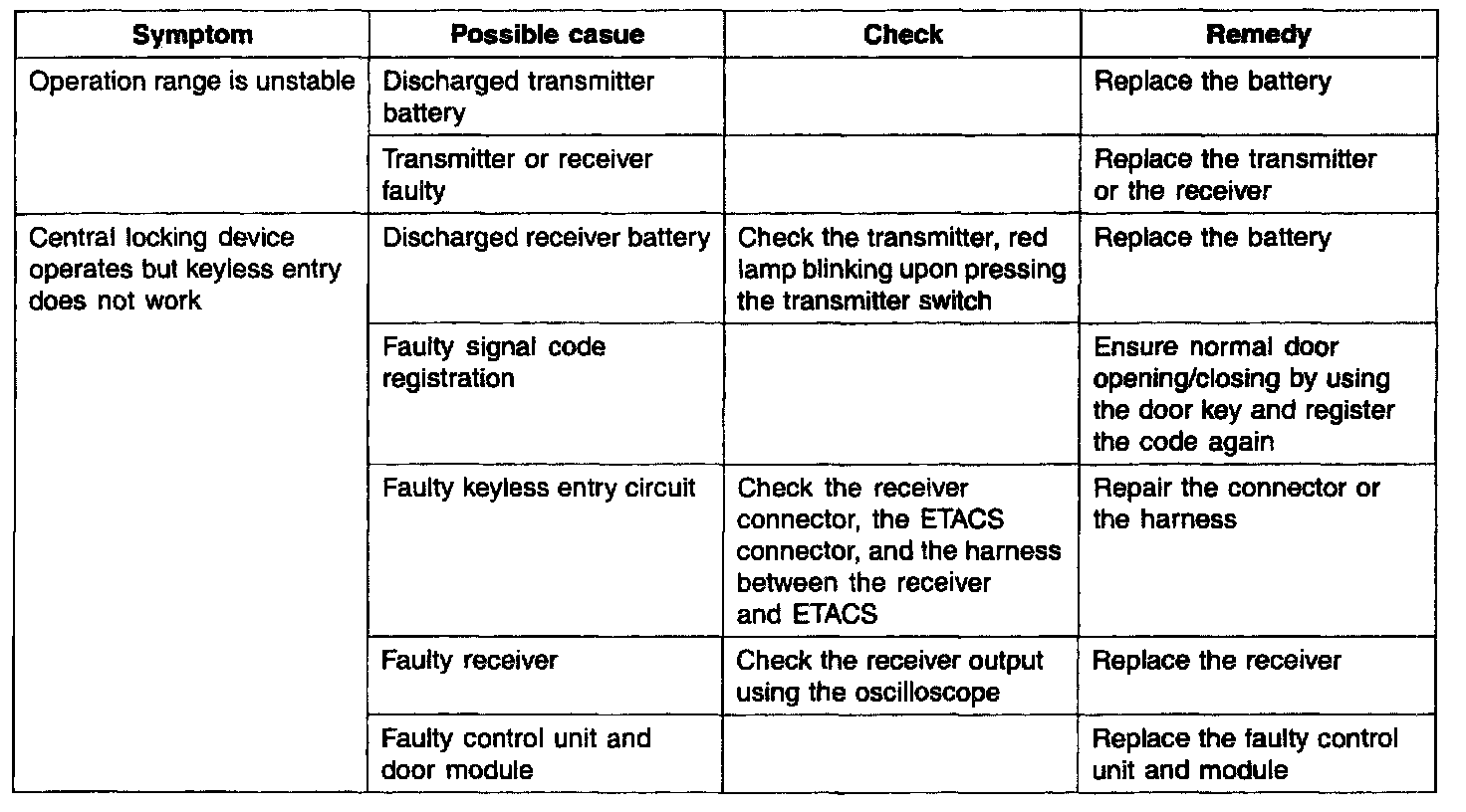 do not operate simultaneously Systems other than the keyless entry may be considered faulty