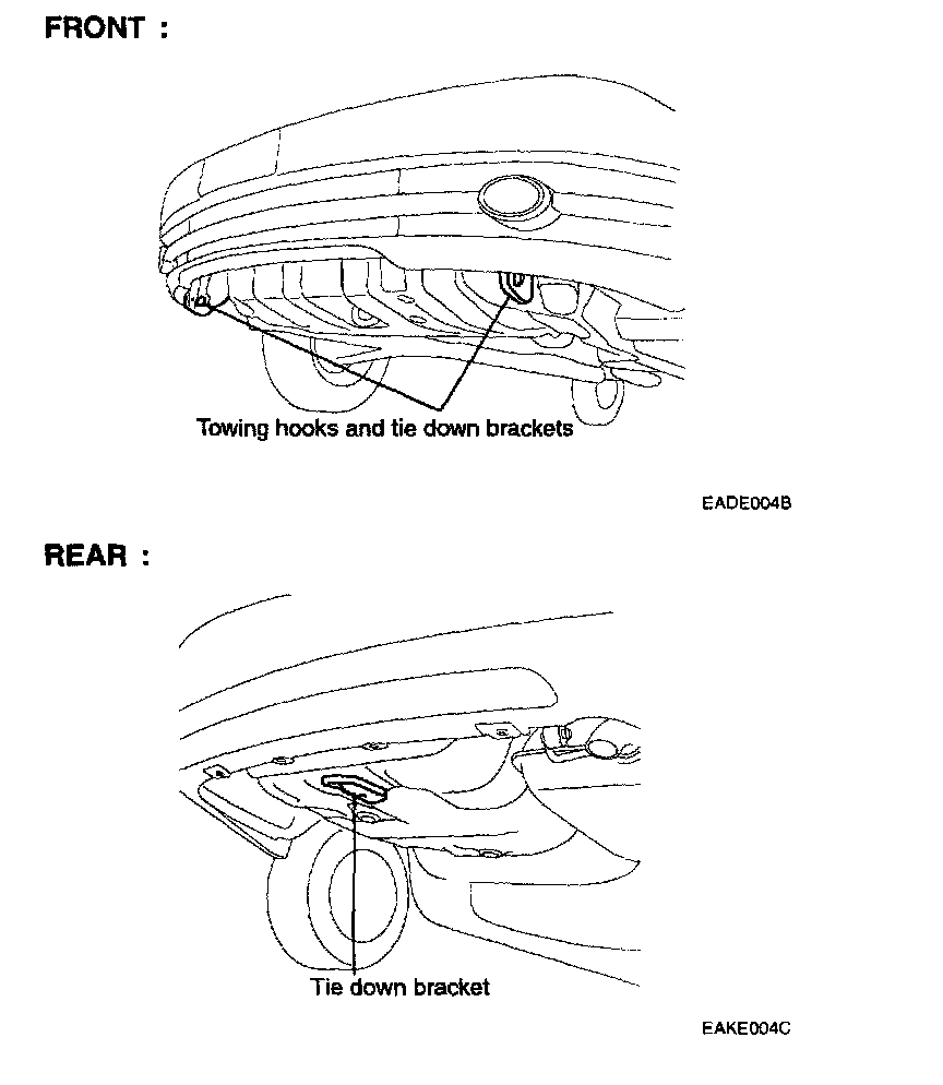 If the vehicle cannot be transported by flat-bed, if should be towed with the front wheels off the ground. If due to damage, the vehicle must be toward with the front wheels on the ground, do not following :