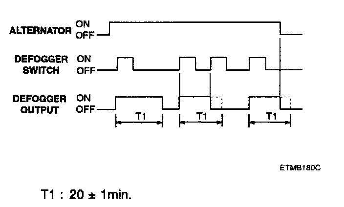 1. After ALT "L" ON, if the defogger is switched ON, the defogger output is ON for 20 minutes duration.