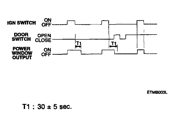 2. When the ignition is switched OFF, the power window output is maintained ON for 30 seconds and then turned OFF.