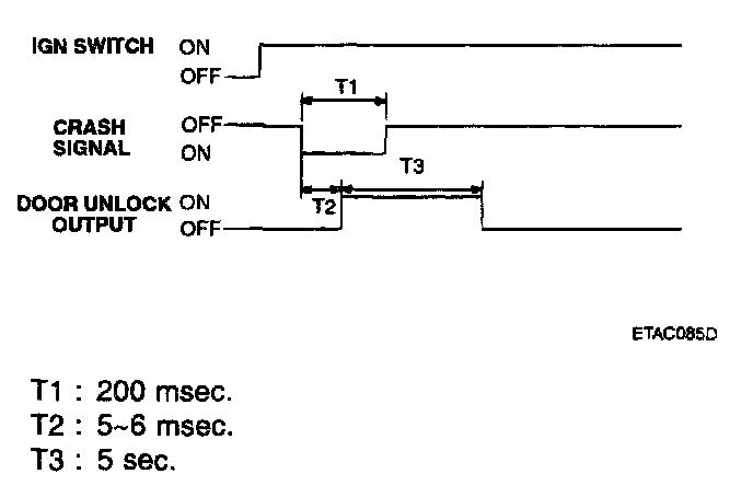 With the ignition turned ON, if the air bag is deployed, a crash signal is received and send an UNLOCK output to all doors UNLOCK.