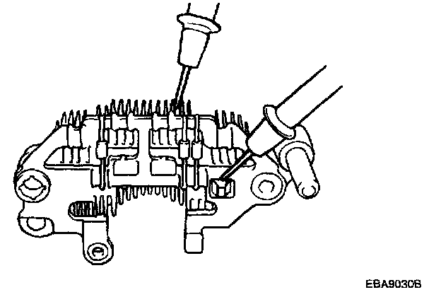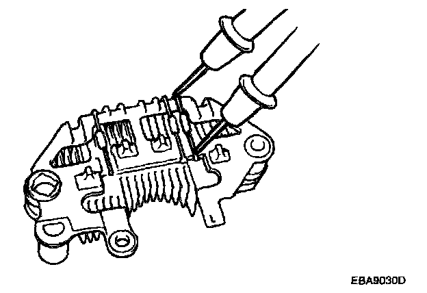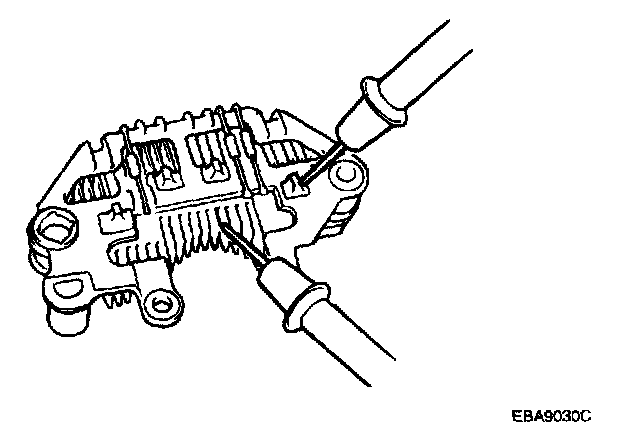 Check for continuity between the positive rectifier and stator coil lead connection terminal with an ohmmeter. The ohmmeter should read continuity in only one direction. If there is continuity in both directions, a diode is shorted.