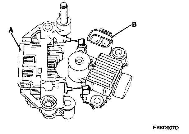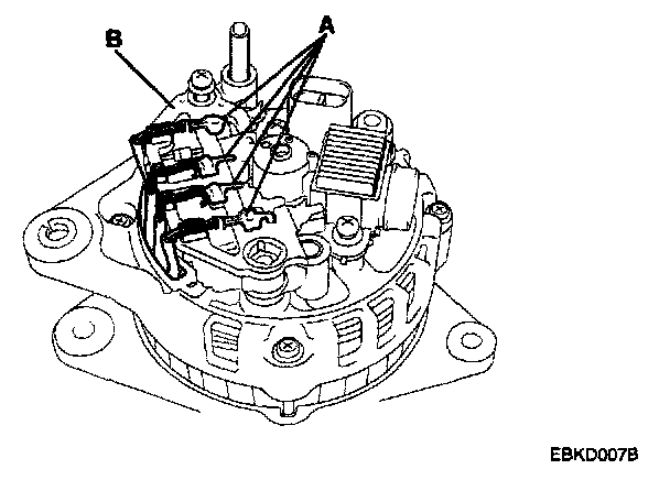 4. Unsolder between rectifier(A) and brush holder(B).