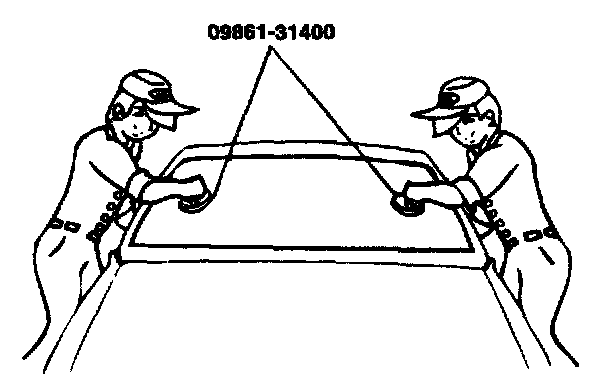7. Take out the windshield glass with the special tool(09861-31400), Glass Holder.