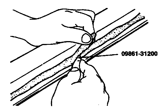 CAUTION: Be careful not to remove more adhesive than necessary, and also not to damage the paintwork on the body surface with the knife. If the paintworks damaged, repair the damaged area with touch-up paint.