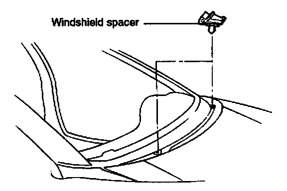 3. Install the windshield glass spacer at the locations as shown in the illustration below.