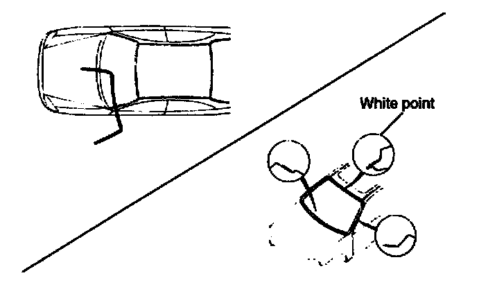 11. Align marks of the windshield glass molding(white point in the glass molding) and inside roof molding.